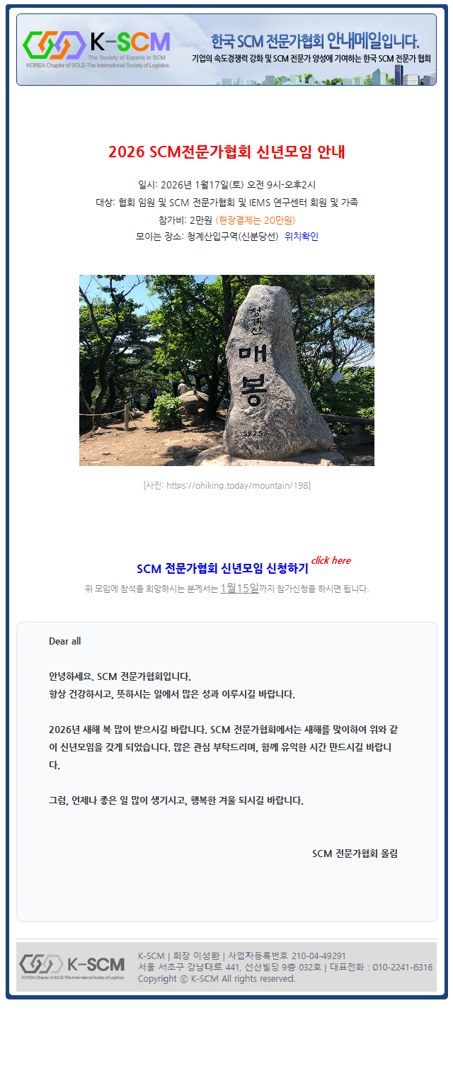 [SCM] 2026³â SCM Àü¹®°¡Çùȸ ½Å³â¸ðÀÓ ¾È³». (½Åû¸¶°¨ÀÏ: 1¿ù15ÀÏ)